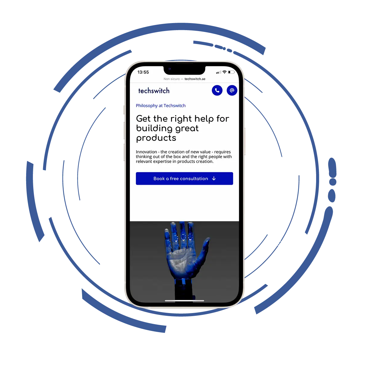 Techswitch è una società avente sede a Dubai che offre consulenze per start-up e team in aziende che devono realizzare applicazioni e piattaforme web, fornendo team di sviluppatori e tecnologie necessarie per la realizzazione. Sono stato contattato attraverso LinkedIn per la creazione di una landing page.